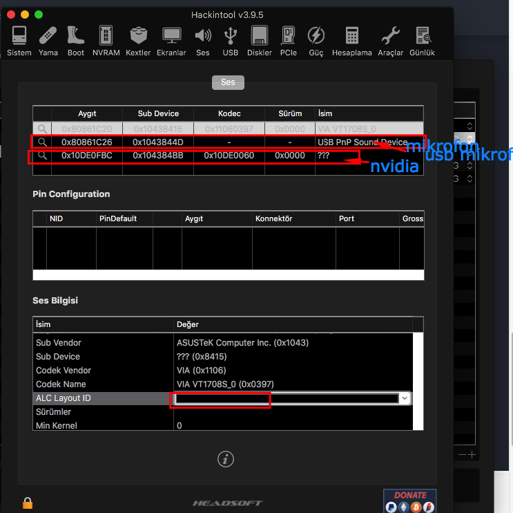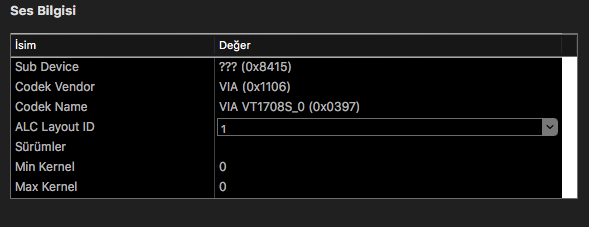 Merhabalar, bilgisayarımda hiçbir şekilde ses alamıyorum. VoodoHDA AppleALC gibi kentleri kurdum olmadı. OpenCore rehberinde olduğu gibi hackintooldan ALC LayoutID bakıp confige geçirmeme rağmen yine ses alamadım. Ne yapmam gerekiyor. Yardımcı olursanız çok mutlu olurum.