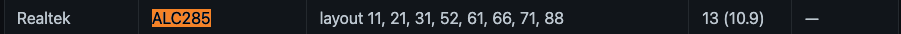 Rehberde anlatılan ALC LAYOUT ID i leri tek tek deneyip NVRAM reset ile beraber. Ses aygıtı ve hoparlör görünmesine rağmen ses alamadım.