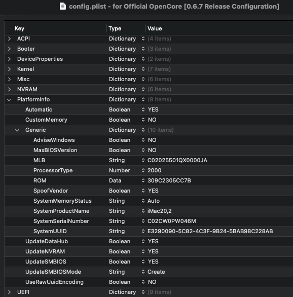 - Mac Adresimi OpenCore Configrator'da ROM bölümüne uygun şekilde yerleştirdim.