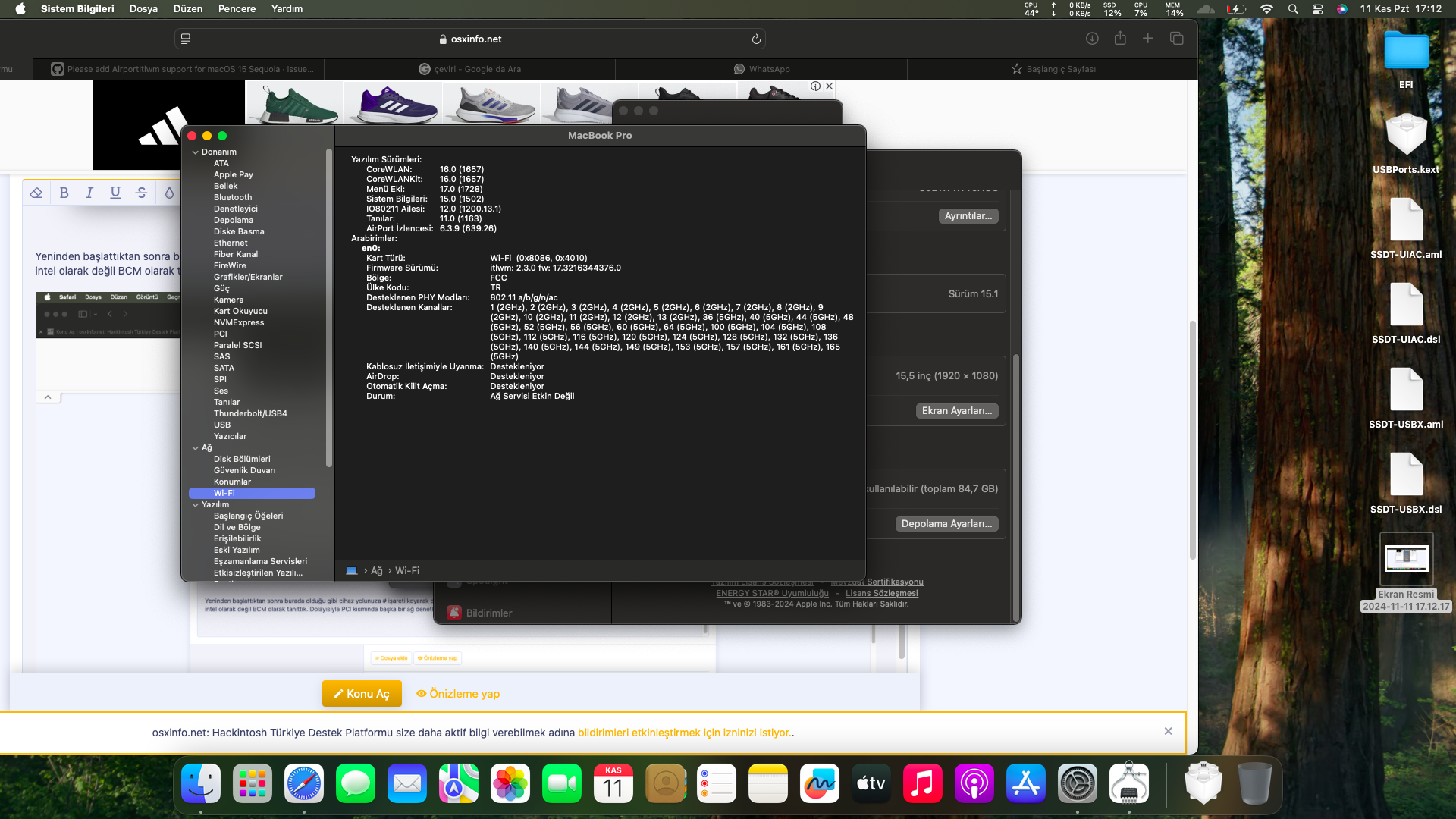 Kaynakça: Please add AirportItlwm support for macOS 15 Sequoia · Issue #1009 · OpenIntelWireless/itlwm
