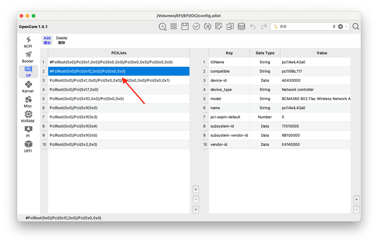 Önce cihazınızın Device Path ini hackintooldan bulun. Kurulum rehberini incelediyseniz PCI aygıtlarını OpenCore a aktarmışsınız demektir. Bu adımı atlayabilirsiniz.Ekli dosyayı görüntüle 56387