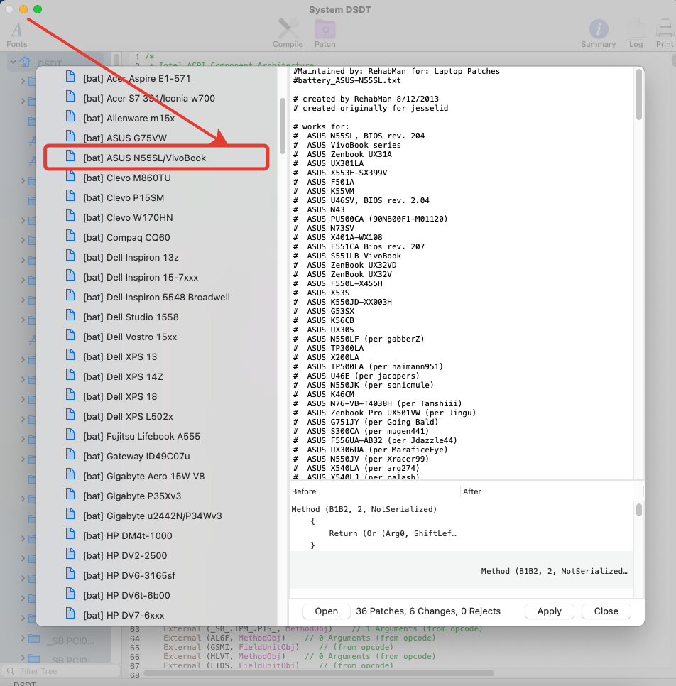 Batarya göstergesi ve fn tuşları artık çalışıyor. DSDT yamaları, acpibatterymanager.kext ve AsusSMC.kext ile yaptım. SSDT kullanarak çözemediğim için eski usülde çözüm üretme yolunu seçtim.