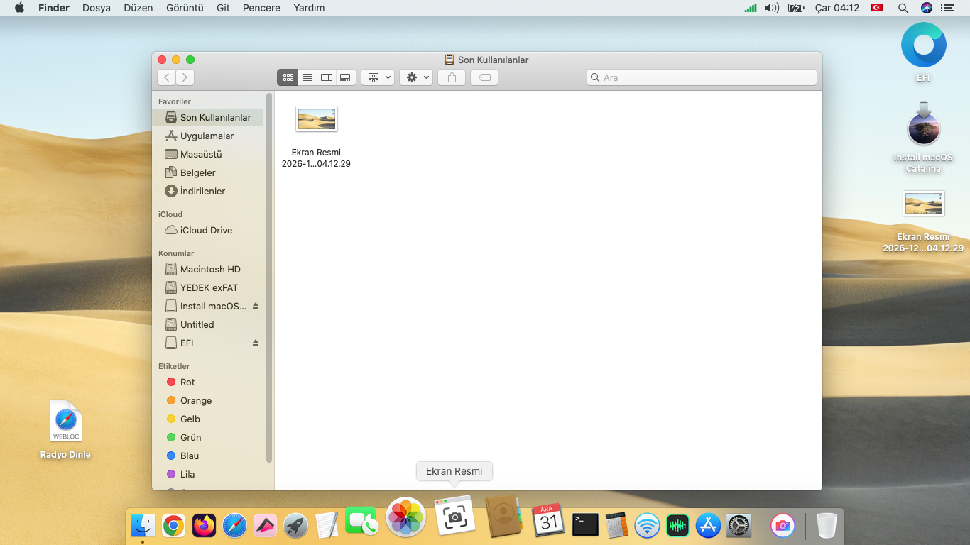 Bu gece Catalina denemek istedim. Ondan önce Big Sur yüklemeye kurulum başlamasına ragmen Apple izin vermiyor donanımı yeterli bulmuyor.Kurabileceğim En yğksek sürüm olarak Catalina kalmıştı. Catalinayı da başarıyla kurdum.