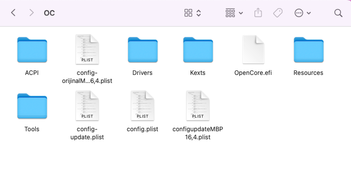 Config.plist: OCLP ile ekran kartınızı tanıttıktan sonra bunu kullanacaksınız. Bu configin içinde ekran yaması bulunmaktadır.
