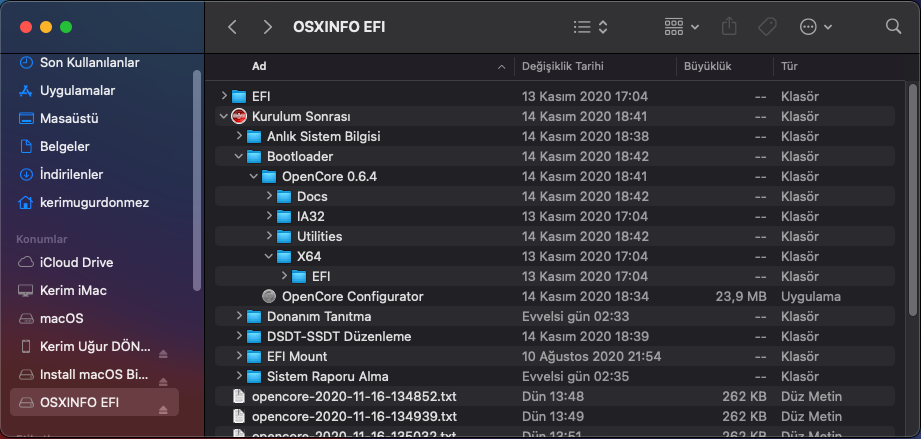 - Sistemi USB'siz başlatabilmek için kurulum USB'sinin "OSXINFO EFI" bölüntüsündeki EFI klasörünü mü sisteme atacağım yoksa, Kurulum Sonrası\Bootloader\OpenCore 0.6.4\X64 yolundaki EFI klasörünü mü atacağım?