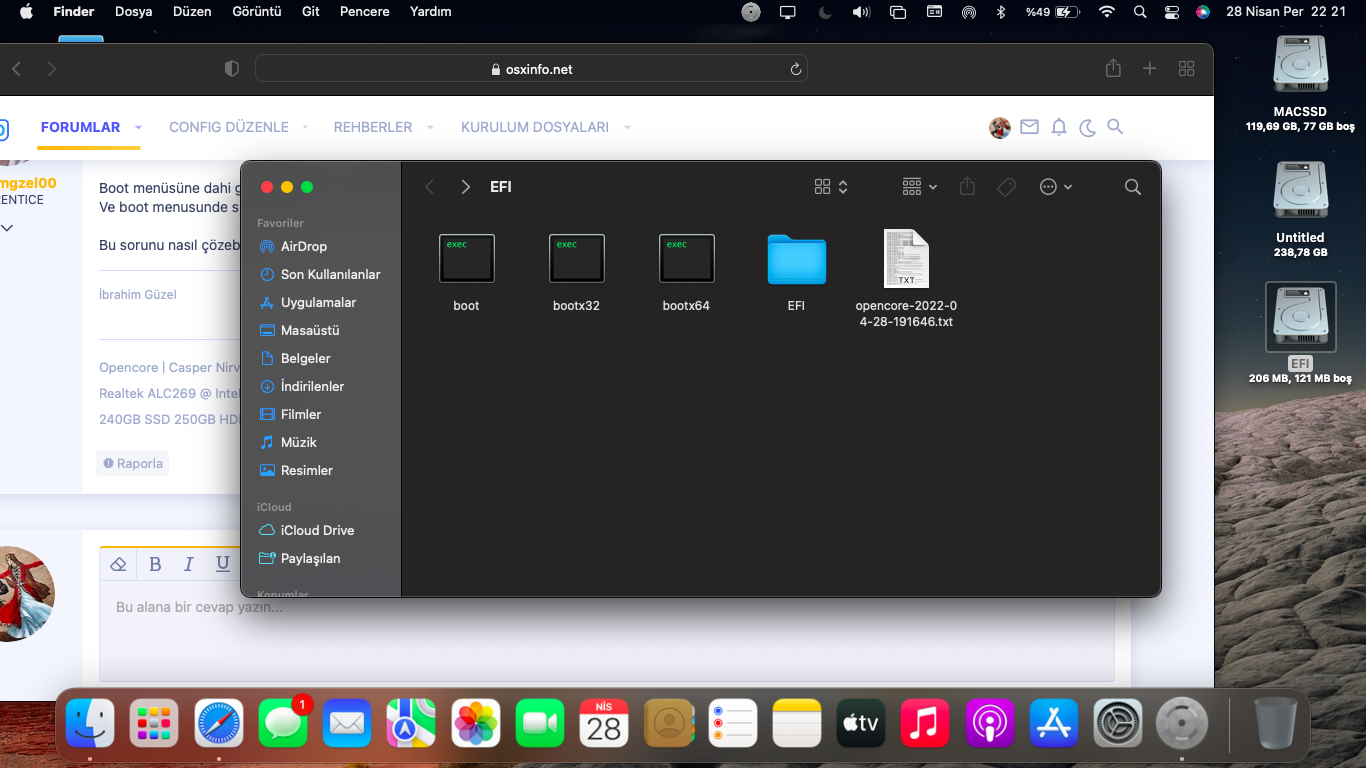 Boot menüsüne dahi giremiyorum. Ancak opencore boot menüsü açıldıktan sonra windows efi dosyasını flash belleğime atarak boot menusune girebiliyorum.