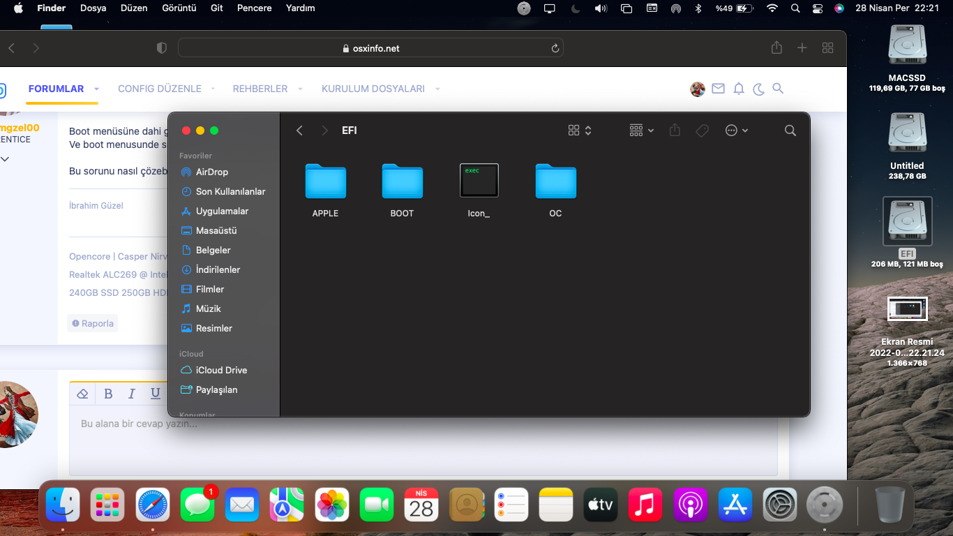 Bilgisayarıma Mac big sur kurdum fakat bilgisayarım flash bellek olmadan açılmıyor. Hatta flash bellek olmadan boot edebilmesi için efi dosyalarını diske taşıdım fakat yine olmadı.
