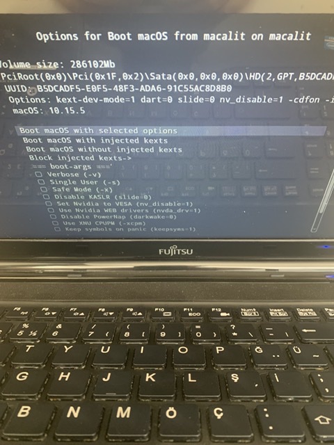 normalde 3 seçenek var resimlerde gelen gizli 4.menünün üzerine gelerek resim aldım bide her seferinde bu ayarlar tikli olur tiksiz hale getirip boot macOS with selected optionsa basarak sorunsuz gırebılıyorum diğer turlu sıkıntılar olabiliyor.Tiksiz halde nasıl kayıt edicez bu menüyü onuda bilemedim.