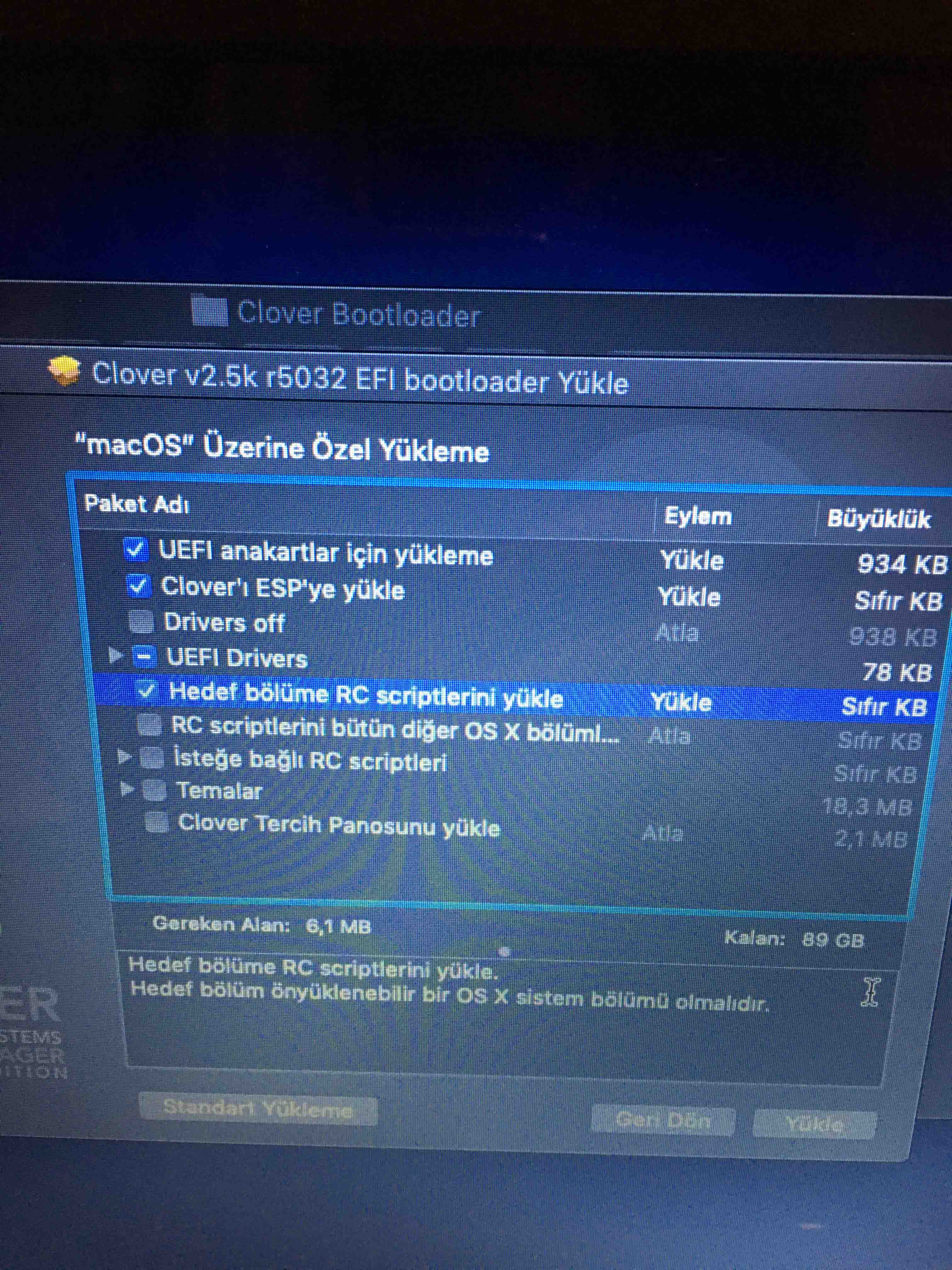 Yüklerken hiçbir sorun yaşamadım fakat usb siz boot etmek için gereken işlemleri yaparken resimde görülen hatayı aldım.