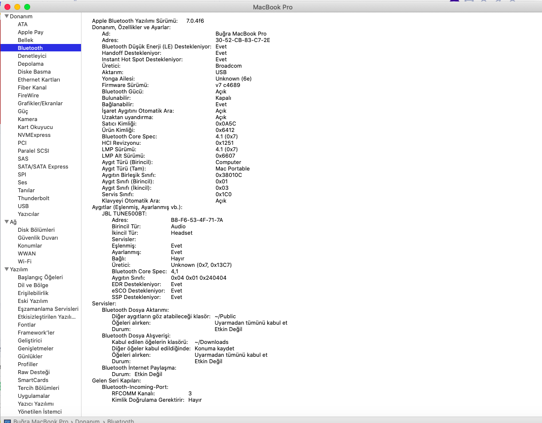 Hocalarım merhabalar sanırım aldığım DW1820a BCM94350ZAE (CN-0VW3T3) kartı ile başım gerçekten belada. Kartın bluetoothu ile yıldızlarımız nedense bir türlü barışmadı. " ÇÖZÜLDÜ - Dw1820a tanıtma - osxinfo.net: Hackintosh Türkiye Destek Platformu " Buradaki konuda da bu sorundan bahsetmiştim ve @montezuma hocamın dediklerini uyguladıktan sonra sorun çözüldü fakat bilgisayarı kapatıp açmam ile bluetooth savaşım tekrar başladı ,defalarca denememe rağmen Bluetooth aktif görünüyor fakat hiçbir şekilde bağlantı kuramıyor. CKO ve LE içinde yüklü olan kextler aşağıdaki gibidir. L/Preferences içindeki com.apple.Bluetooth.plist dosyasında bir şey farkettim LowEnergyConnectionTimeout ifadesi geçiyor dosyayı da ekte belirtiyorum lütfen bu sorunu nasıl aşabilirim? Config dosyamda hiçbir oynama yapmadım mevcut ayarlar ile bluetooth çalışmıştı.