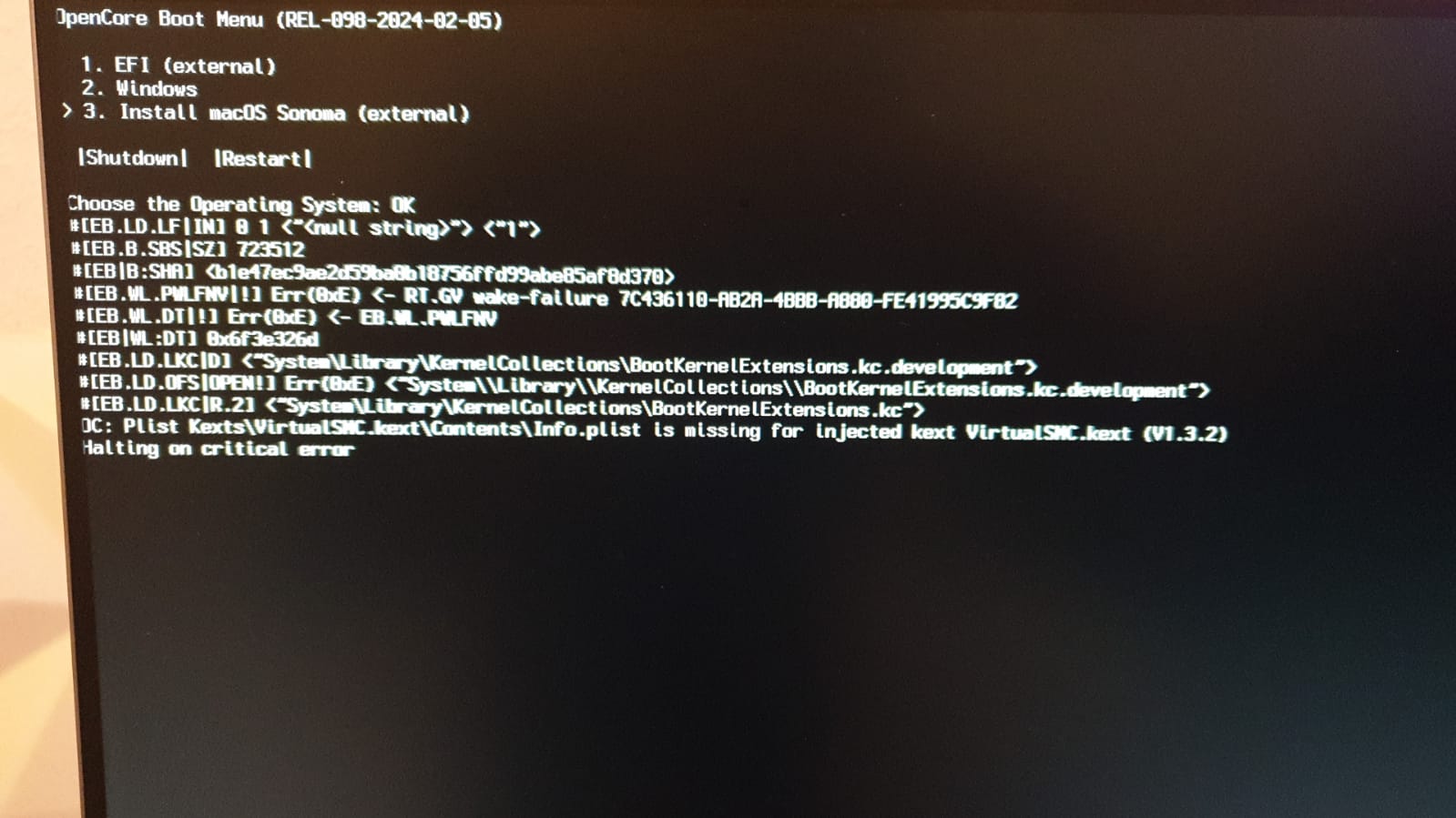 OpenCore ekranında NVRam Resetten sonra ekli EFI ile deneyin.