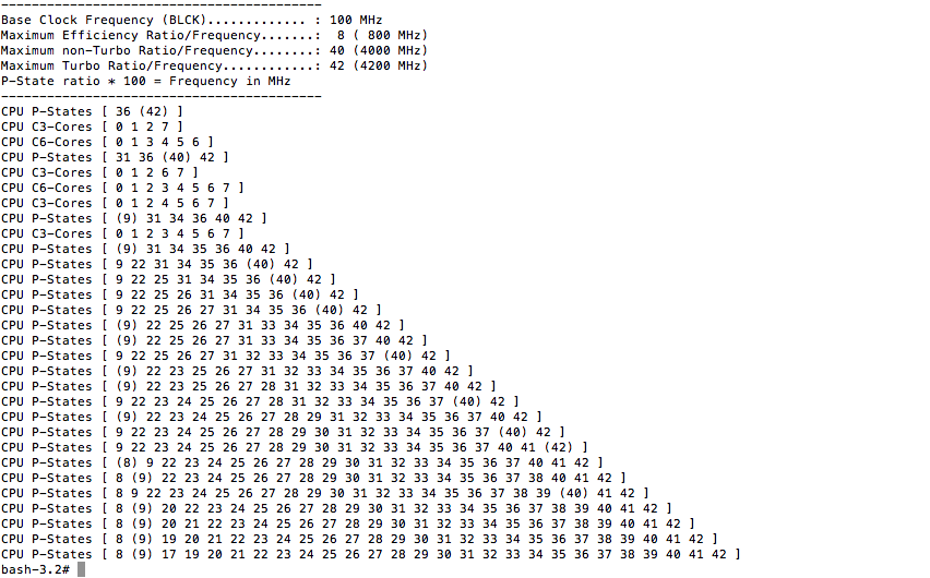 Bilindiği üzere Apple Macbook'ların genel olarak sistem boşta iken CPU çalışma frekanslarını yüksek tutuyor. Örnek olarak 13.1 - 13.3 serisi kullanların sistem boşta iken Intel Power Gadget'da gördükleri taban frekans 1.30 Ghz/- fakat aslında bu bizim için gereksiz enerji tüketimi demek. Buna yönelik olarak Pike arkadaşımız ssdtPRGen.sh yanında SMbiosumuzun FrequencyVectors listesini güncellememizi öngörüyor. Böylece sistemimiz boşta iken 0.8 - 0.5ghz e kadar düşüp hem pil süresinden hemde gereksiz fan sesinden kurtulmamızı sağlıyor.