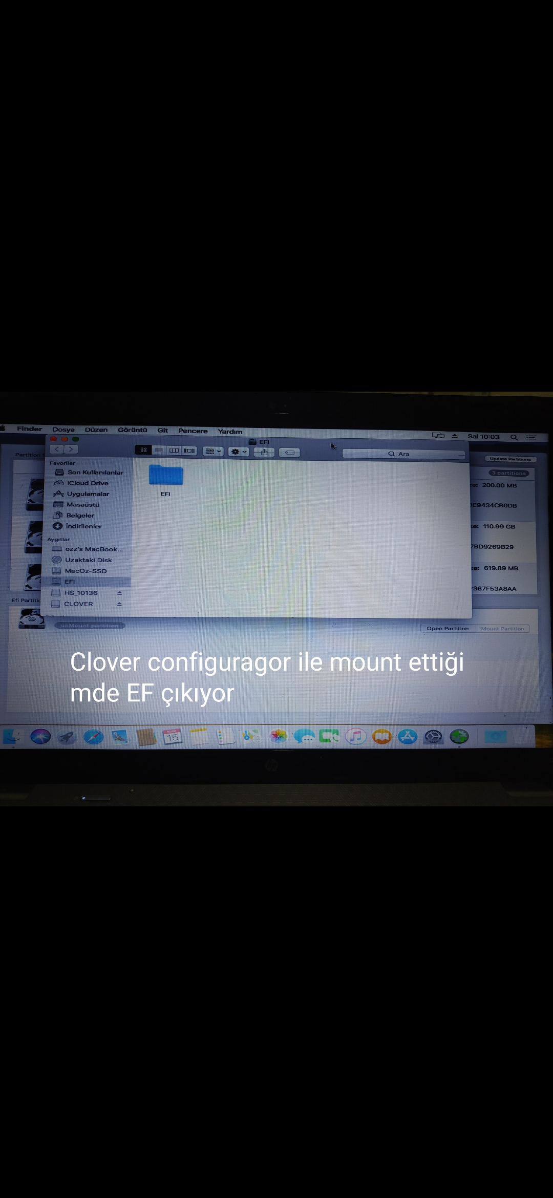 1-finder HDD diskleri göster dedim.(masaüstüne SSD HDD çıktı EFİ çıkmadı)