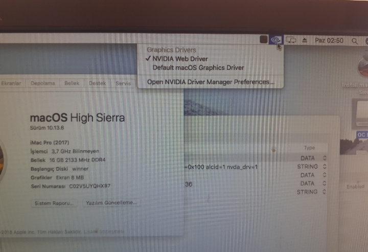 bi de reset nvram yapınca tekrar default macos graphics driver a geçiyor