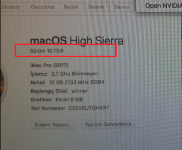 Bu Mac Hakkında/Sürüm 10.13.6 üzerine tıklayıp öğrenin.