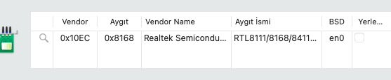 Kullandığınız config.plisti masa üzerine kopyalayıp açın. DeviceProperties sekmesini açın. Altında List of PCI Devices içerisinden Ethernet kontroller tıklayıp sekmede açılan yolu ekleyin. Kontrol edelim aynısı çıkacak mı?