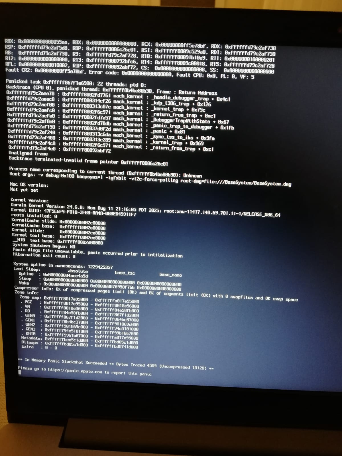 "in memory panic stackshot succeeded" hata değil hatanın sonucu oluşan durumdur.