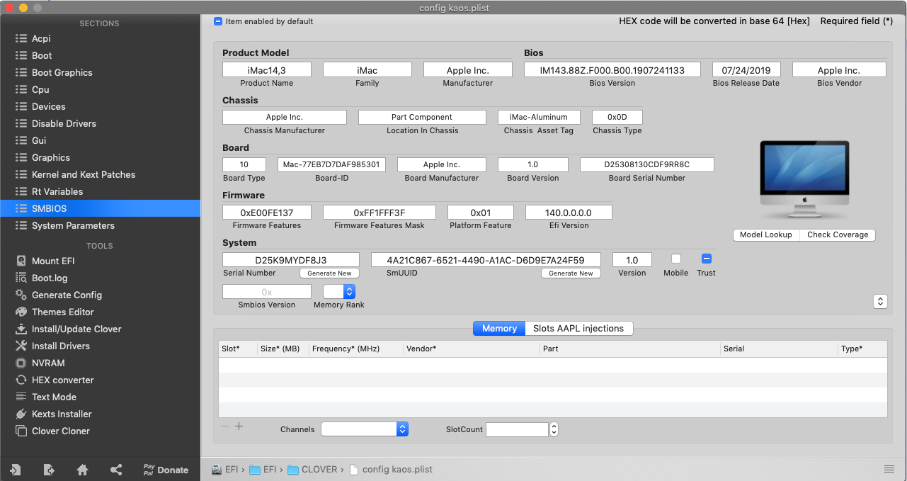 Öncelikle bilgisayarımın özellikleri aşağıda ve kullandığım CLOVER Dosyası ektedir, ayrıca belirtmem gereken özellikler varsa yazımı düzenleyebilirim.