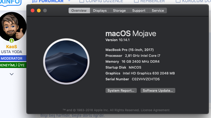 macOs Sürümü: macOS Mojave Version 10.14.1