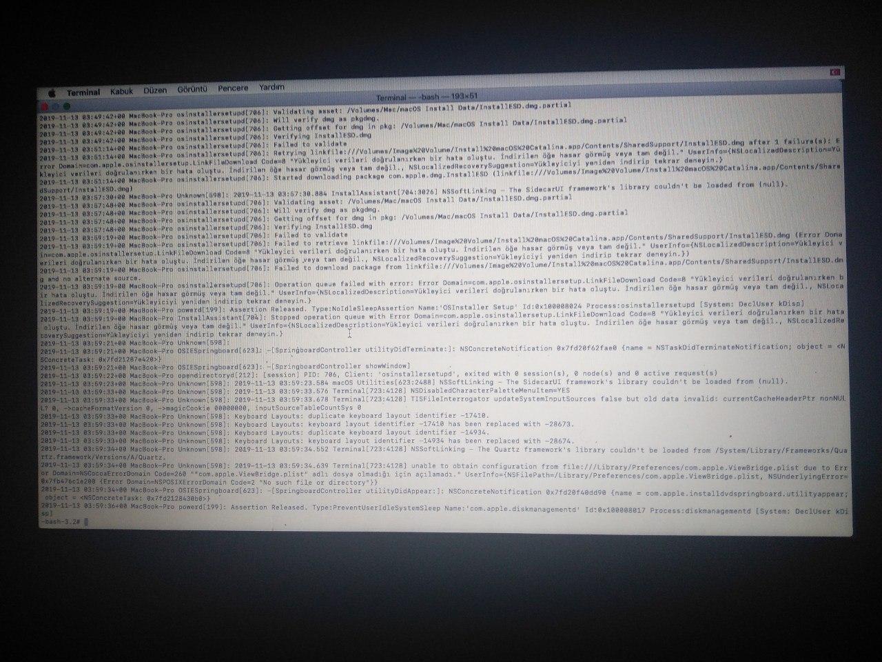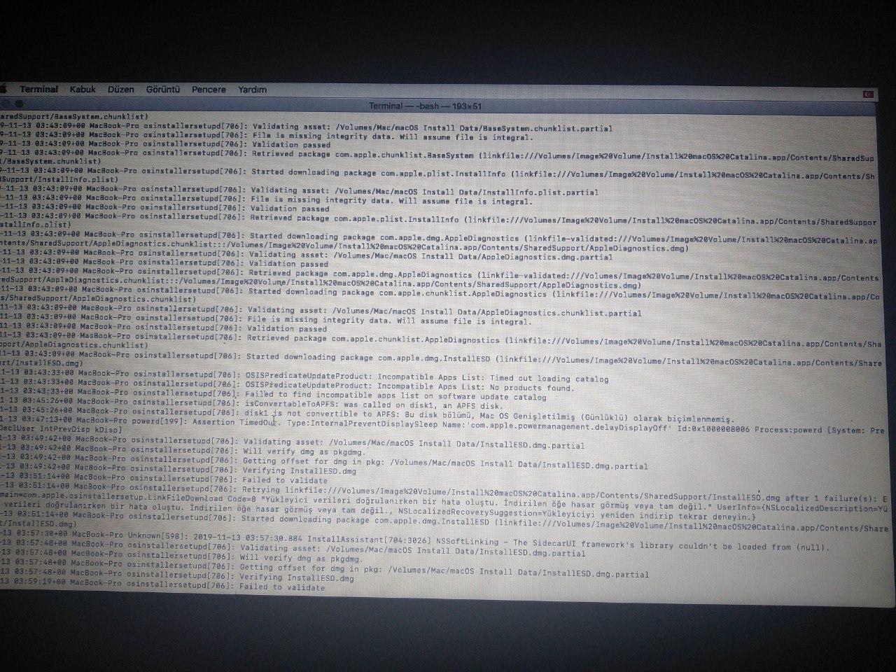 MacOS Catalina güncel imajı ile laptopa kurulum yaparken bu aşamada takılıyorum. Etcher, Win32DiskImager ile 64gb USB'ye yazıp hatta drivedroid üzerinden bile kurulum denedim. Hepsinde aynı hata ile karşılaşıyorum. MacOS Mojave sürümünü hiç bir sorun olmadan sorunsuz şekilde kurabiliyorum. APFS, HFS olmak üzere her iki türde kurulum yapmayı da denedim. Biosumu da en güncel sürüme güncelledim.