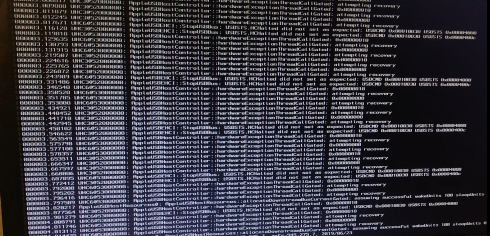 USBSTS.HCHalted did not set as expected: USBCMD 0x00010030 USBSTS 0x00004008