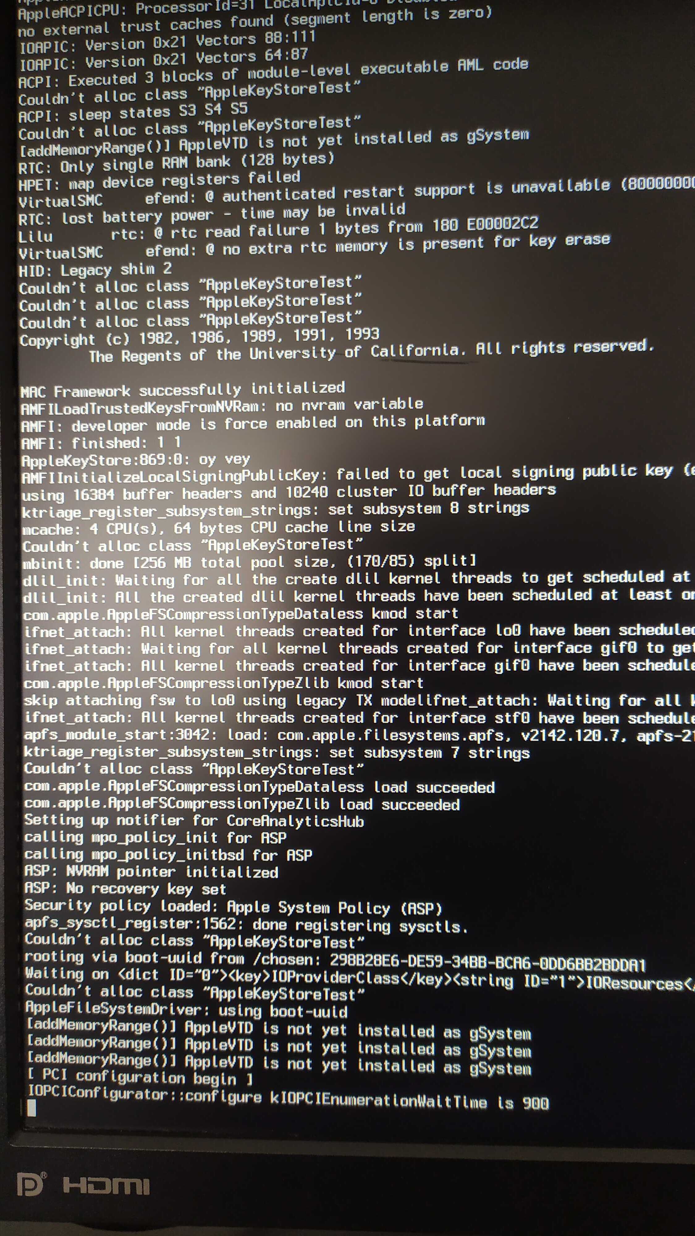 Aşağıda özelliklerini belirttiğimim sistemim için MacOS Ventura sürümü yüklemesi gerçekleştirmekteyim. NVRam Reset işlemi yaptıktan sonra Install MacOS Ventura seçeneğini seçtim ve karşıma Boot verbose modu açıldı ve aşağıda ekran görüntüsünü belirttiğim bölümde yazılar dondu kaldı. Sorunla ilgili yardımcı olacak arkadaşlara şimdiden teşekkür ediyorum.