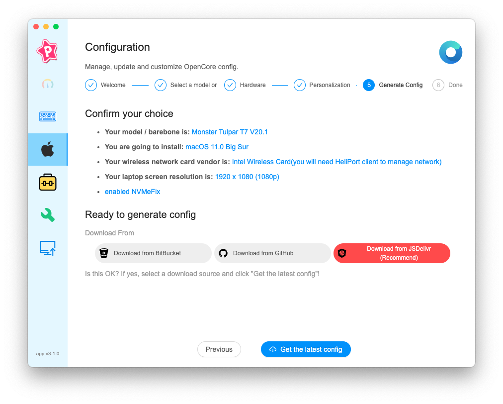 İndireceğiniz kaynağı seçin, (fark etmiyor) ve "Get the last config" deyin. EFI klasörünüz masaüstünde oluşacaktır.