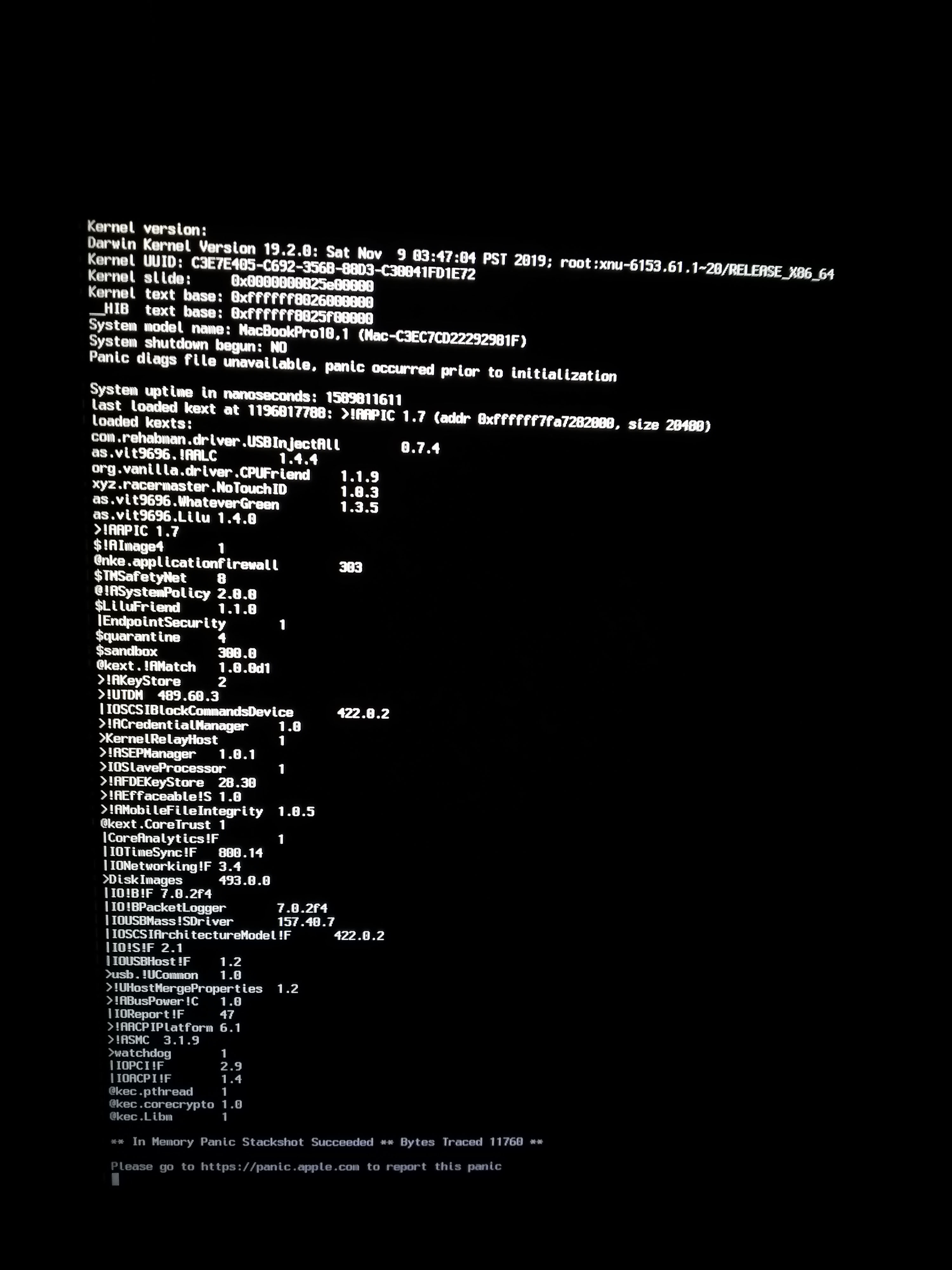 Elma yarıya kadar geliyor sonra tekrardan clover açılıyordu. Tekrardan Catalina yüklemeyi seçtiğimde aynı işlem sonsuz loopa giriyordu. Boot Argumentsa -v yazdığımda yükleme reset atmadan önce aşağıdaki hata karşıma çıkıyor. Ve loopa devam ediyor. Laptopum optimus kullanıyor. Dahili Intel Hd 4000 ve Nvidi a GTX 660m. gtx 660m'i kullanamayacağımı biliyorum. Ne yapabilirim ?
