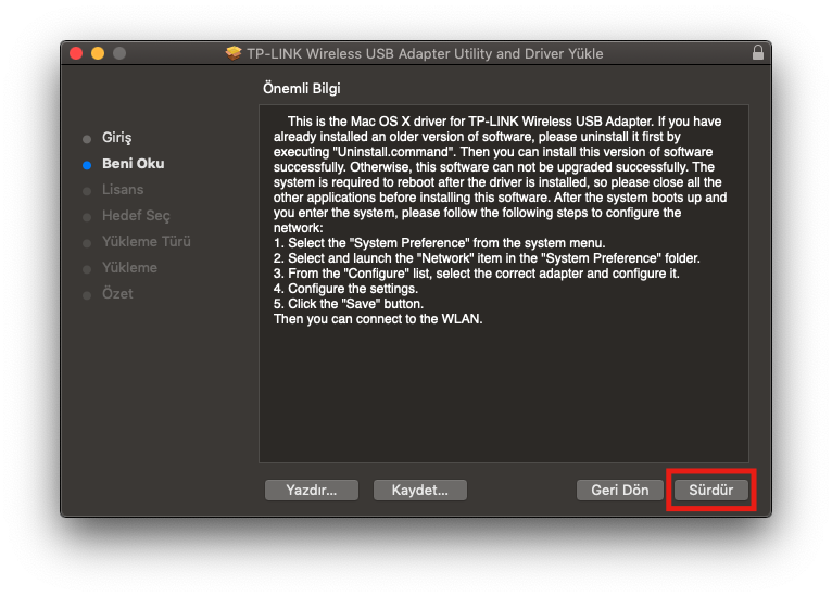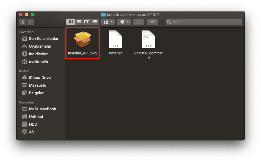 -> Dosyanın içerisinde bulunan Installer.pkg dosyasını çalıştırıyoruz.