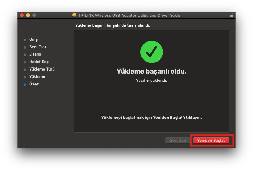 -> Cihaz yeniden başladıktan sonra işlem tamamlanıyor.