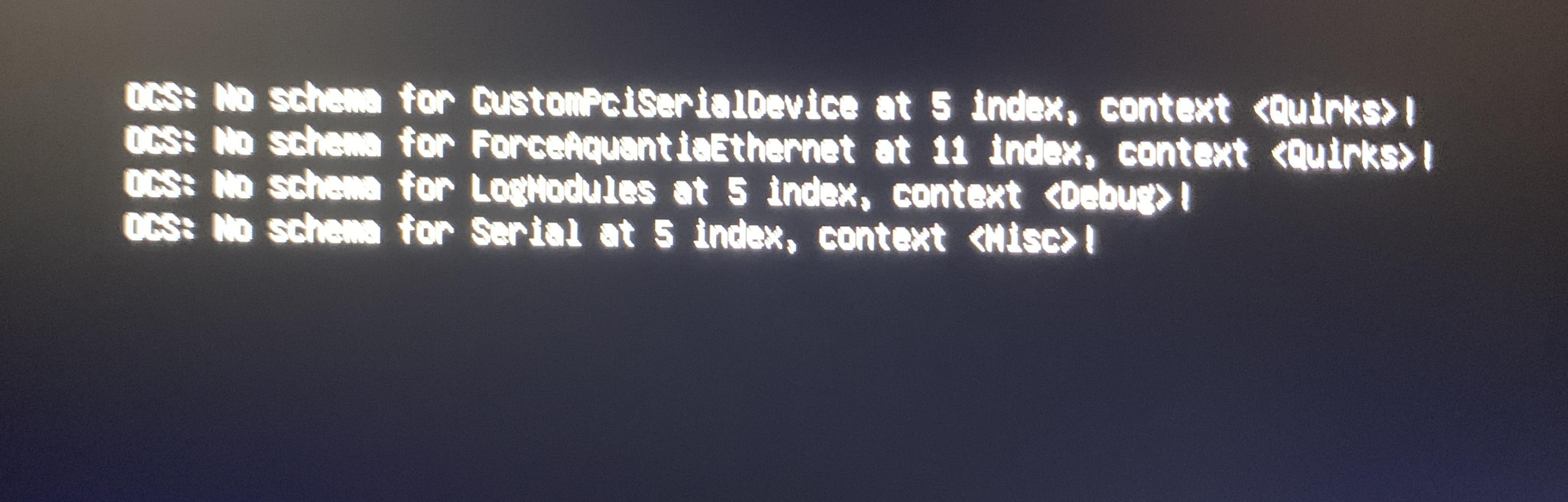 Teşekkürler. Dediğiniz gibi OpenCore sürümüme uygun configuratorla config.plistimi kaydedince hatalar kayboldu :)