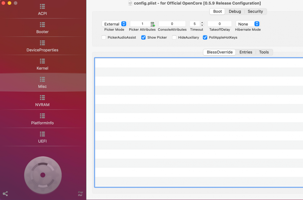 0.7.0'da Sources klasörü değişti. İndirme adresini ekliyorum. Sürüme ait opencanopy.efi dosyasını değiştirmişseniz. Sources klasörünü değiştirip Misc/Picker variant'ı örneğin Acidanthera\GoldenGate olarak değiştirip plisti save edin.