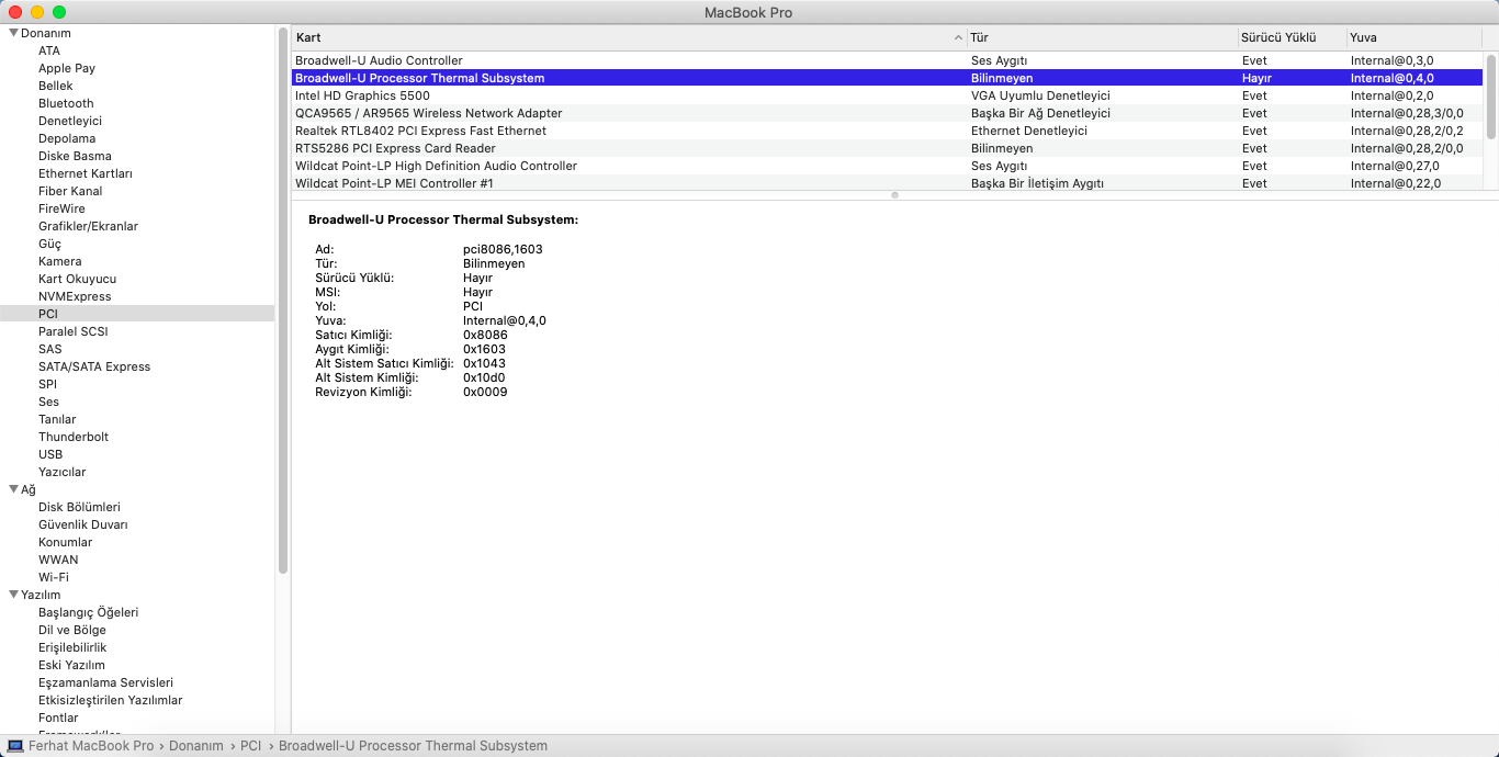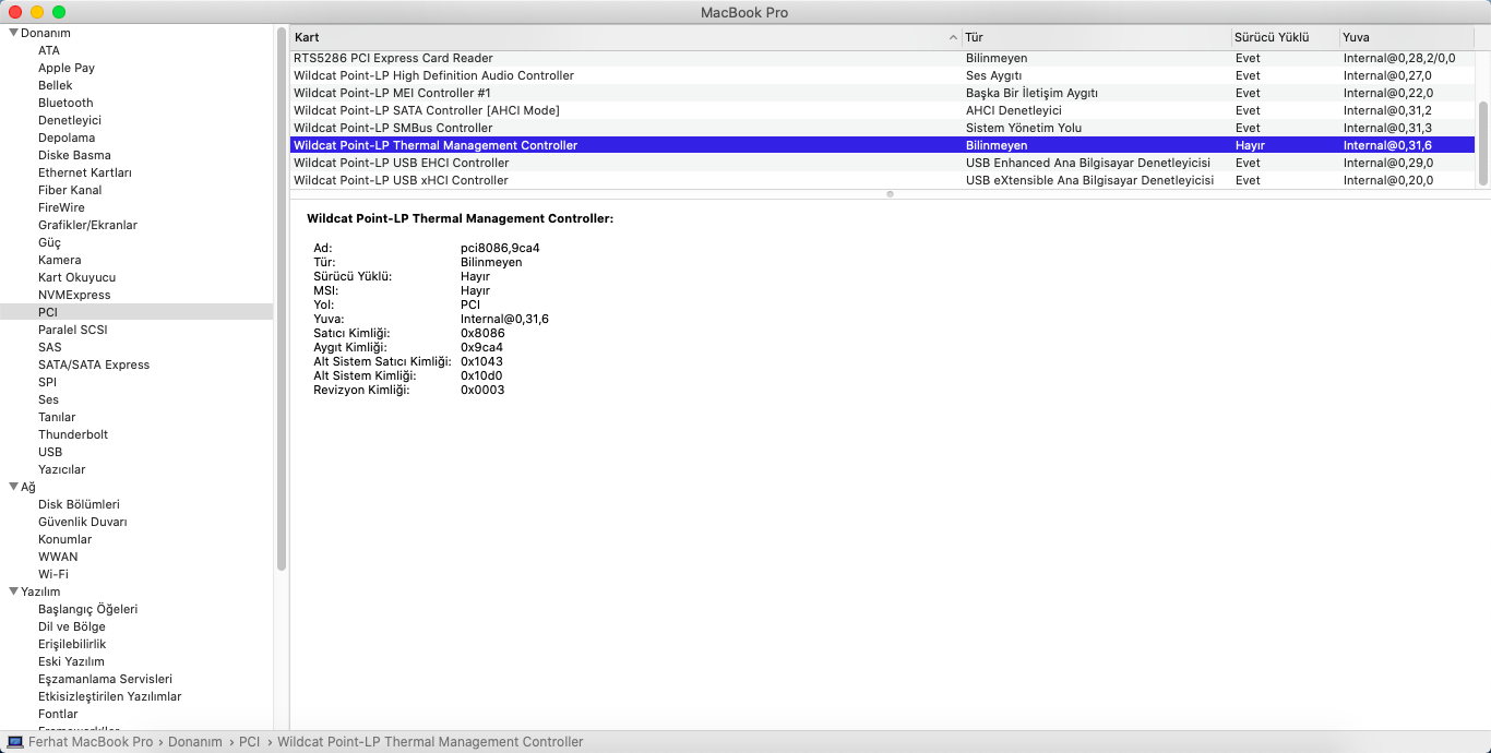 Sistem sorunsuz ise zaten bir şey yapamana gerek yok. Ayrıca dediğim gibi PIC içinde aygıtın görünmesi bunu macOS içinde tanındığı ve çalışmayıp soruna yol açtığı anlamına gelmez. Bu mac Hakkında / PCI içindeki tanımlar sadece kozmetik. İStersen bunları Config / Devices / içinde kaldırabilirsin.