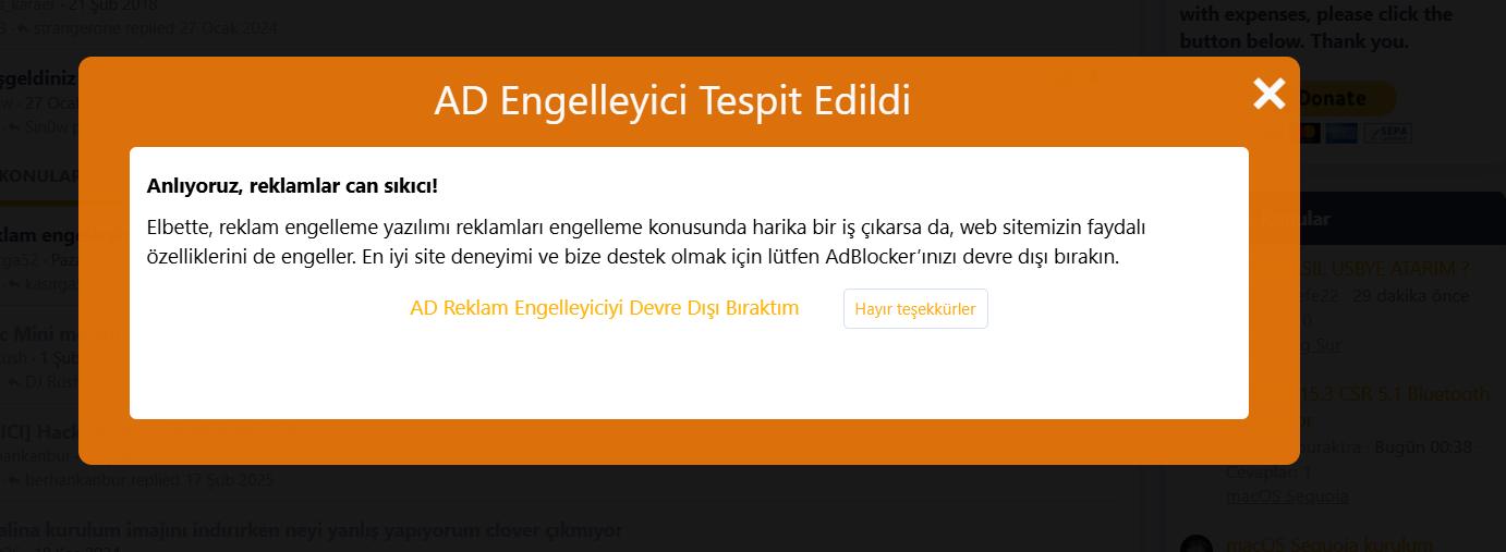 AD Reklam Engelleyiciyi Devre Dışı Bıraktım    Hayır teşekkürler