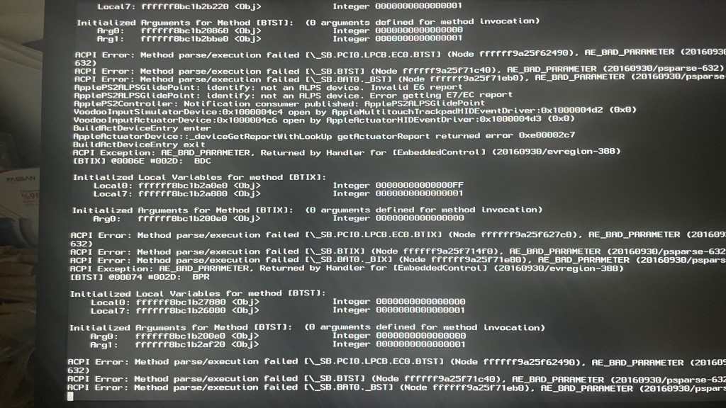 Hazırladığın EFI dosyalarını da paylaş. ACPI üzerinden cihaz yollarında hatalar alıyorsun. Hangi EFI kullandığını anlayalım. OCLP ile hazırladığın EFI de OCLP bir mac cihazda olduğunu varsayarak ACPI dosyalarını diziyor. Bir sürüm de sorun olmaz diğerinde de ama sürekli bununla devam edemezsin. Bazen küçük güncelllemeler ile de bozulabilir.