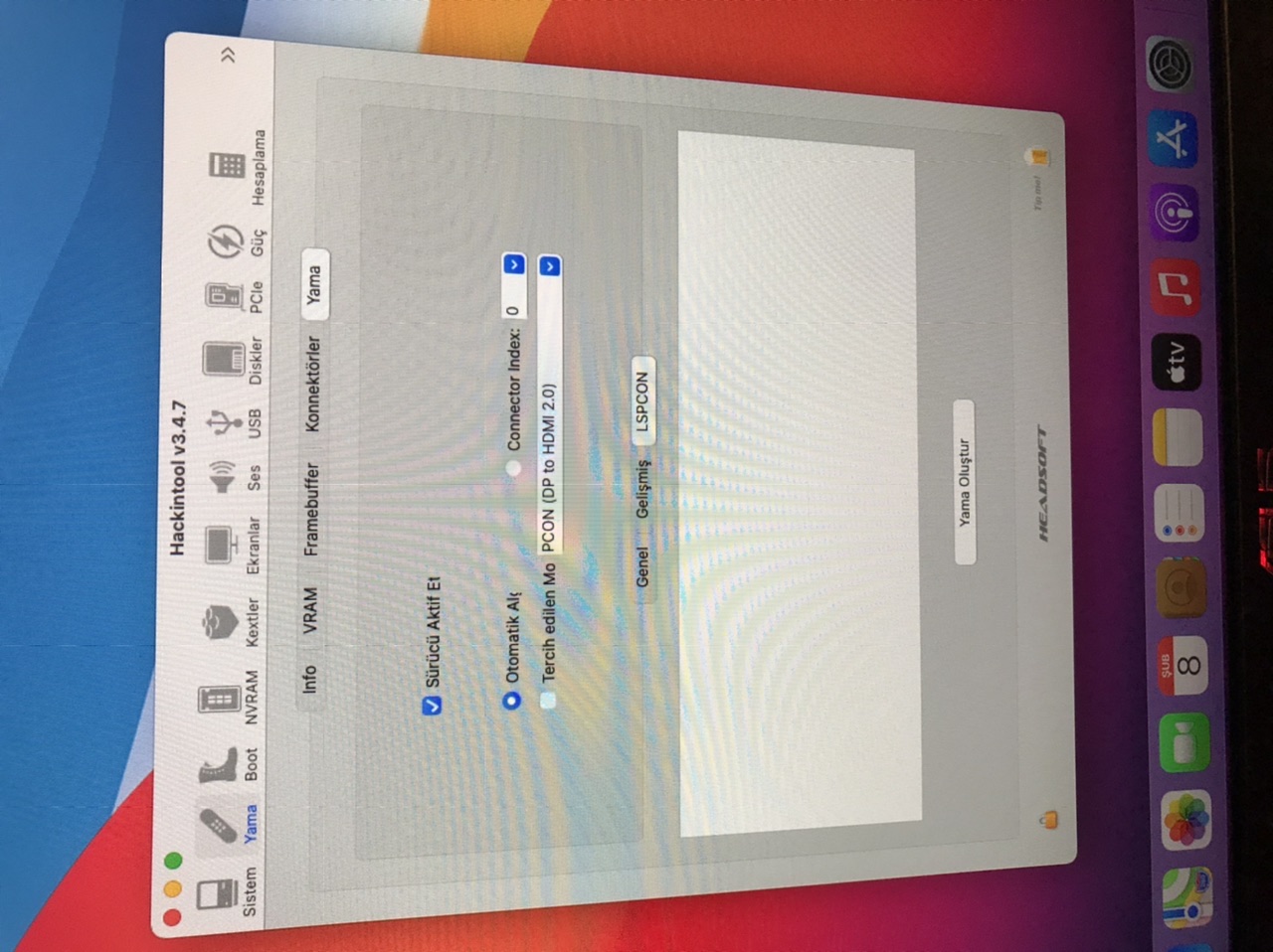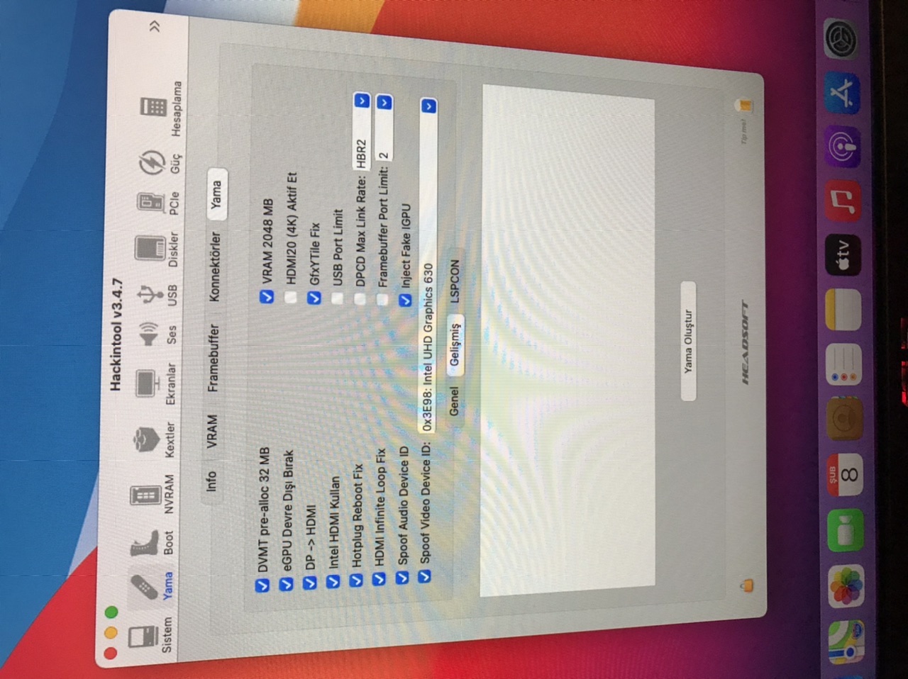 Big Sur’u başarılı bir şekilde kurdum ekran kartını tanıttım fakat sistem açılana kadar hdmi görüntü alıyorum daha sonra hdmi dan görüntü alamıyorum sadece display porttan geliyor görüntü