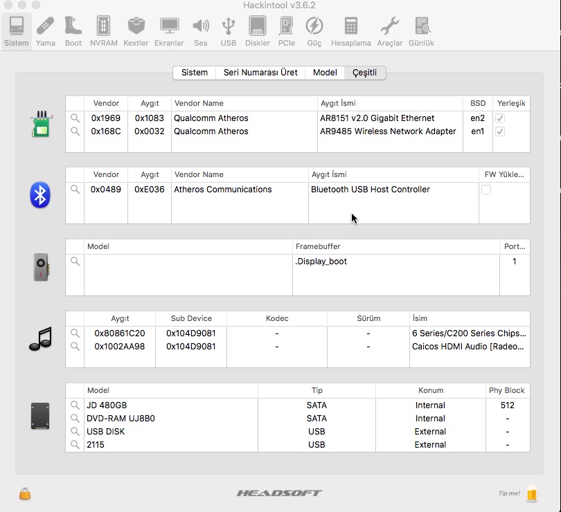 Üstad kextleri CLOVER/kexts/Other içerisine yapıştırdım ve sistemi yeniden çalıştırdım ama wifi hala yokHackintosh Üzerinde Atheros Wi-Fi Kartı - osxinfo.net: Hackintosh Türkiye Destek Platformu wifiyi bununla tanıtmayı dene bir