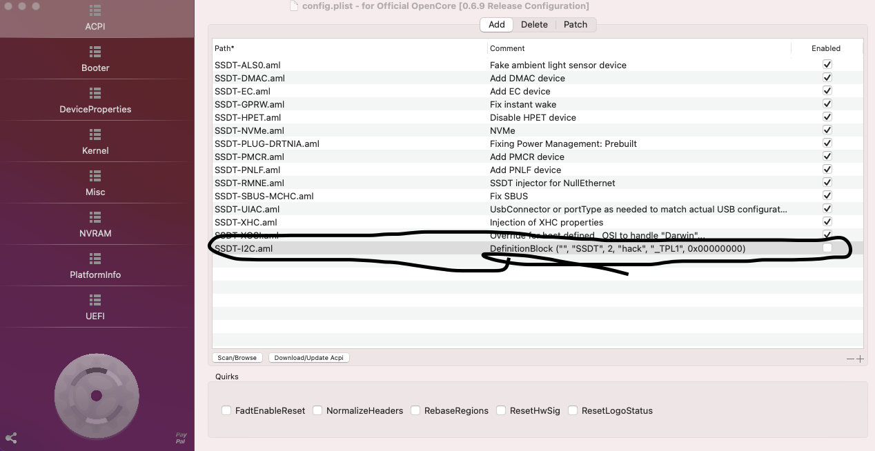 Config dosyanızı a.ın ve kernel kısmına gelin. Görselde işaretlediğim kextlerin hepsini bu listeden kaldırın. Yukarıda paylaştığım KExti EFI / OC / KEXT içerisinde var olanla değiştirin ve daha sonradan bu listeye ekleyin. Sistemi yendien başlatın ve test edin.