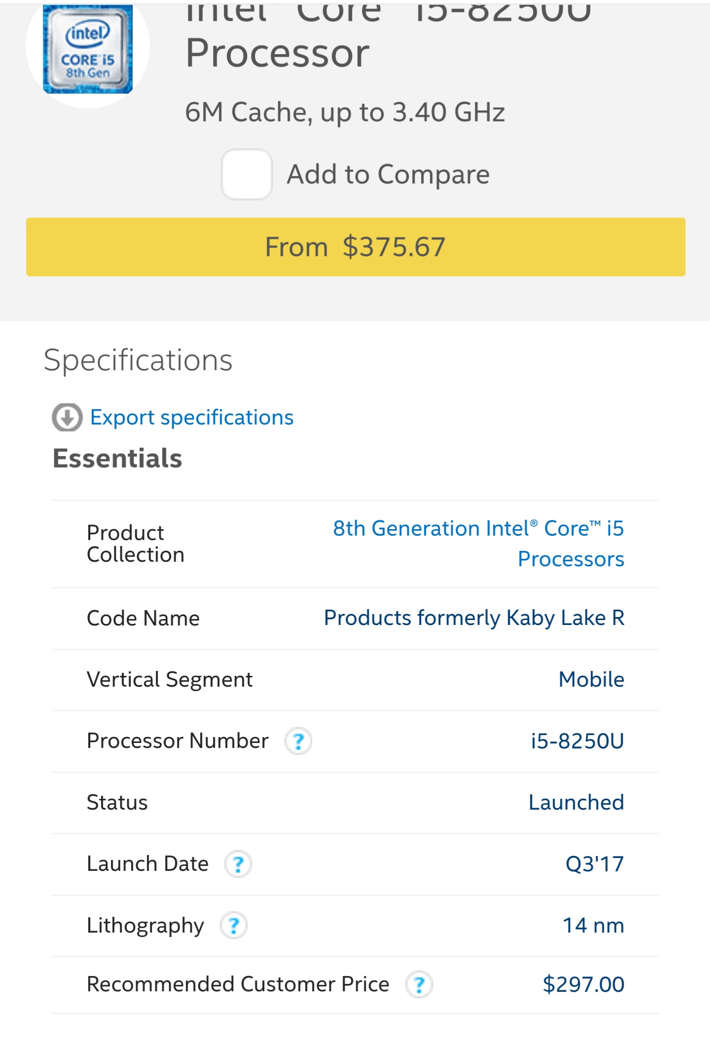 Cpu: Intel i5 8250u