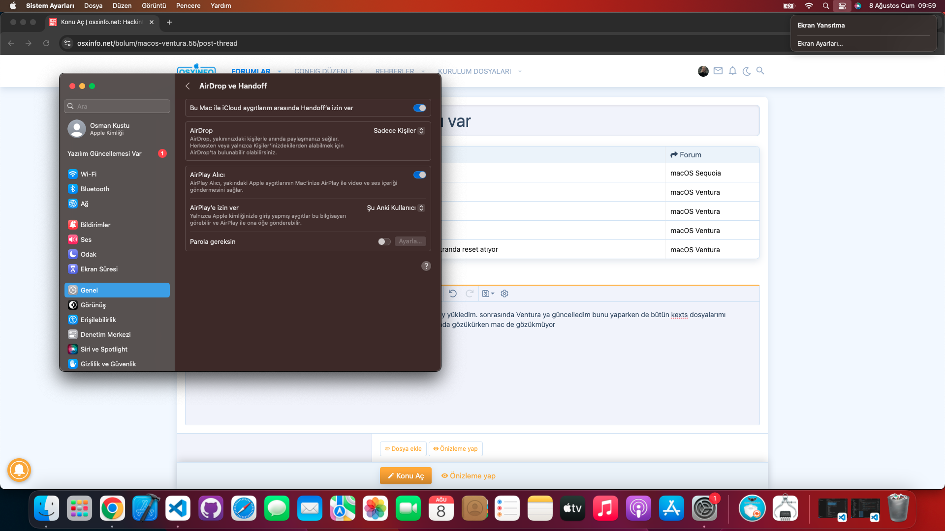 ÇÖZÜLDÜ Ventura ekran paylaşımında sıkıntı var